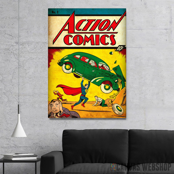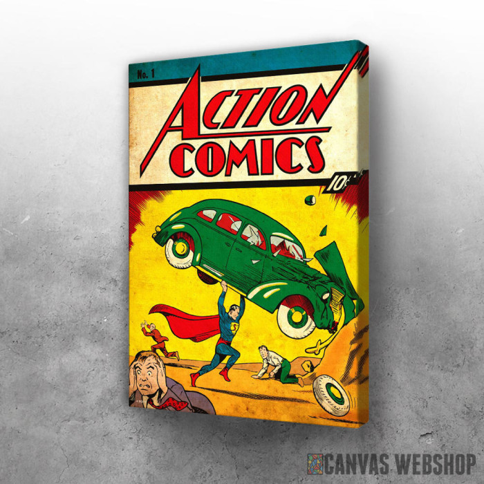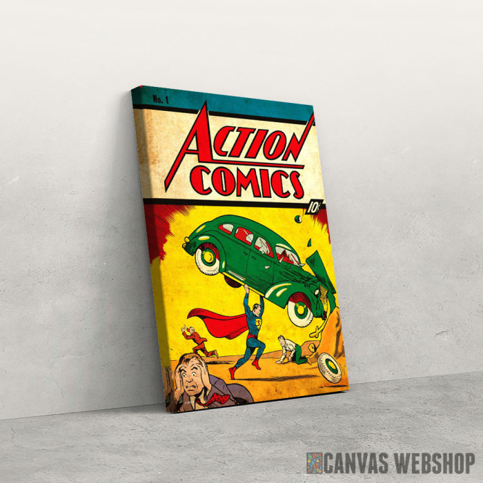 Supermen i auto je slika odštampana na kvalitetnom pamučnom platnu koje je zategnuto na ram od bukovog drveta. Slika Supermen i auto je dostupna u različitim dimenzijama.