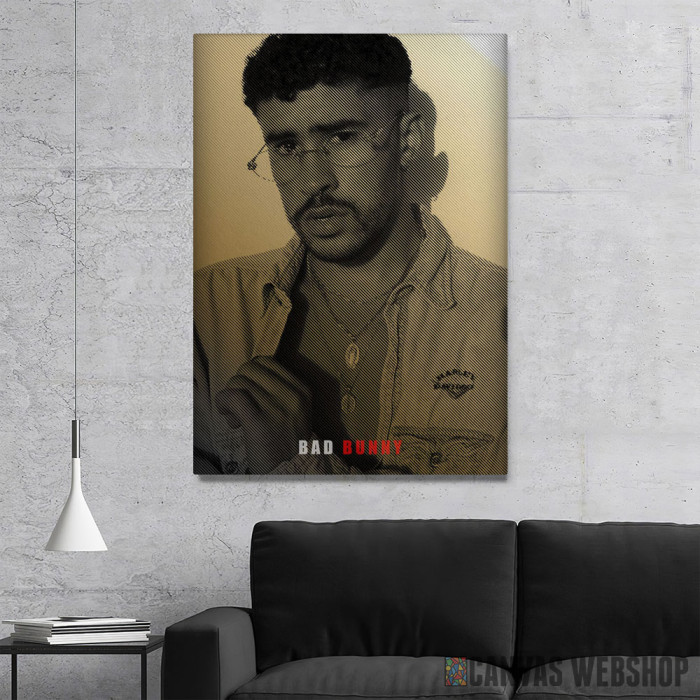 Bad Bunny je slika odštampana na kvalitetnom pamučnom platnu koje je zategnuto na ram od bukovog drveta. Slika Bad Bunny je dostupna u različitim dimenzijama.