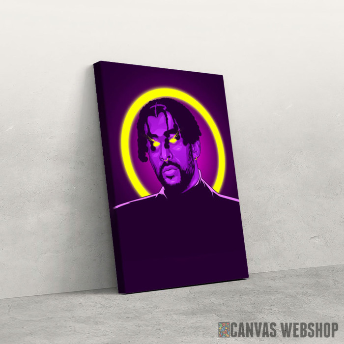 Bad Bunny reper je slika odštampana na kvalitetnom pamučnom platnu koje je zategnuto na ram od bukovog drveta. Slika Bad Bunny reper je dostupna u različitim dimenzijama.