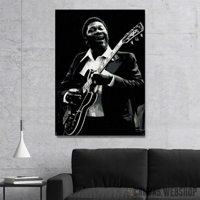 BB King retro je slika odštampana na kvalitetnom pamučnom platnu koje je zategnuto na ram od bukovog drveta. Slika BB King retro je dostupna u različitim dimenzijama.