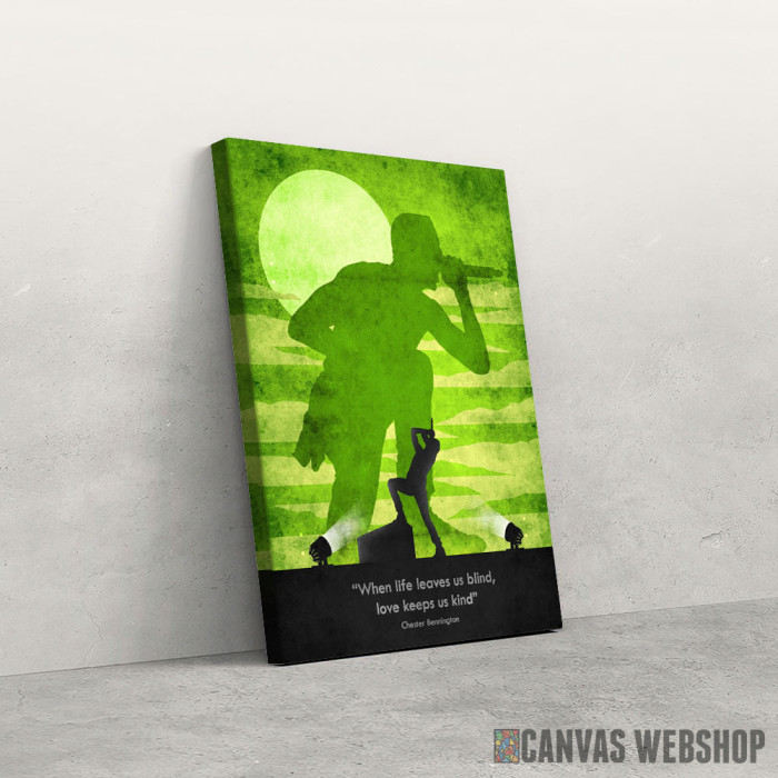 Čester Benington citat je slika odštampana na kvalitetnom pamučnom platnu koje je zategnuto na ram od bukovog drveta. Slika Čester Benington citat je dostupna u različitim dimenzijama.