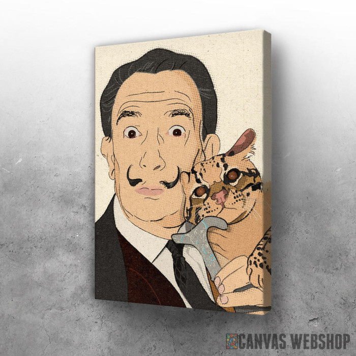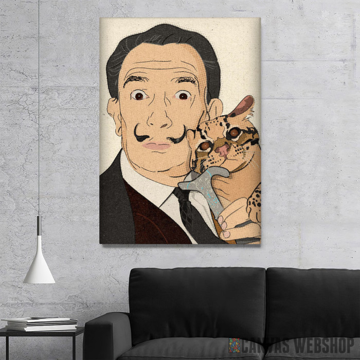 Dali sa ljubimcem je slika odštampana na kvalitetnom pamučnom platnu koje je zategnuto na ram od bukovog drveta. Slika Dali sa ljubimcem je dostupna u različitim dimenzijama.
