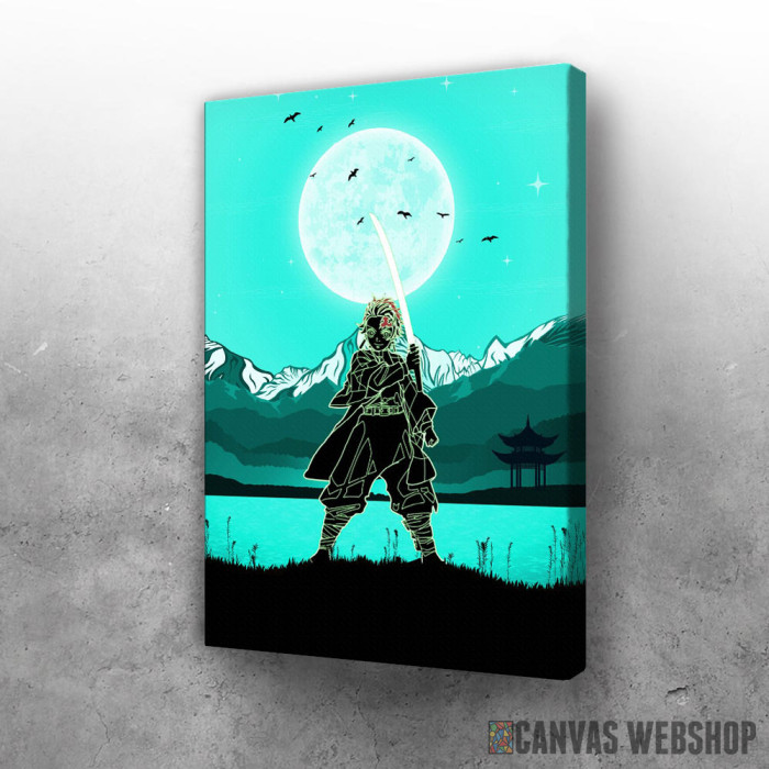 Demon Slayer sword je slika odštampana na kvalitetnom pamučnom platnu koje je zategnuto na ram od bukovog drveta. Slika Demon Slayer sword je dostupna u različitim dimenzijama.