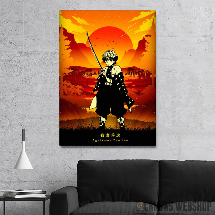 Demon Slayer young Agatsuma Zenitsu je slika odštampana na kvalitetnom pamučnom platnu koje je zategnuto na ram od bukovog drveta. Slika Demon Slayer young Agatsuma Zenitsu je dostupna u različitim dimenzijama.