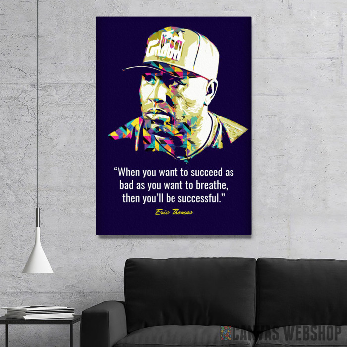 Eric Thomas Quotes je slika odštampana na kvalitetnom pamučnom platnu koje je zategnuto na ram od bukovog drveta. Slika Eric Thomas Quotes je dostupna u različitim dimenzijama.
