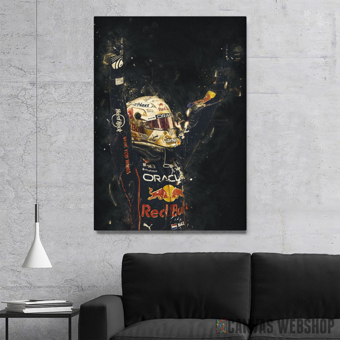 F1 Max Verstappen holandski vozač je slika odštampana na kvalitetnom pamučnom platnu koje je zategnuto na ram od bukovog drveta. Slika F1 Max Verstappen holandski vozač je dostupna u različitim dimenzijama.