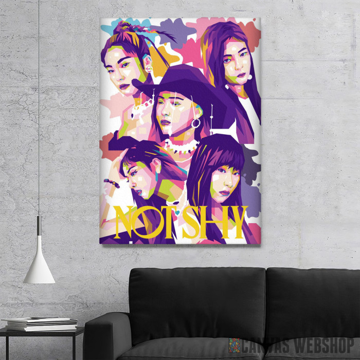 Itzy Not Shy song je slika odštampana na kvalitetnom pamučnom platnu koje je zategnuto na ram od bukovog drveta. Slika Itzy Not Shy song je dostupna u različitim dimenzijama.