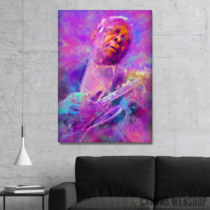 King of Blues je slika odštampana na kvalitetnom pamučnom platnu koje je zategnuto na ram od bukovog drveta. Slika King of Blues je dostupna u različitim dimenzijama.