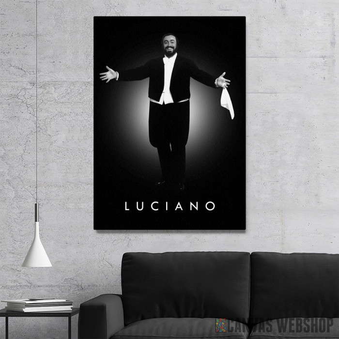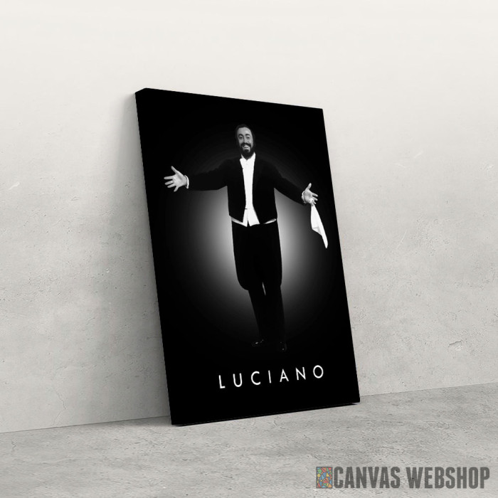 Luciano Pavarotti je slika odštampana na kvalitetnom pamučnom platnu koje je zategnuto na ram od bukovog drveta. Slika Luciano Pavarotti je dostupna u različitim dimenzijama.