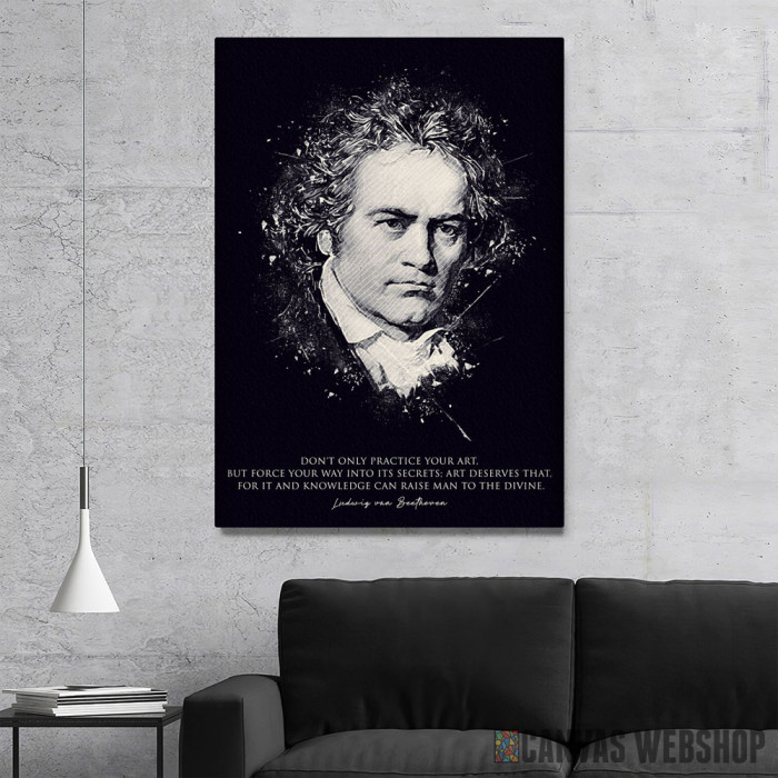 Ludwig van Beethoven citat je slika odštampana na kvalitetnom pamučnom platnu koje je zategnuto na ram od bukovog drveta. Slika Ludwig van Beethoven citat je dostupna u različitim dimenzijama.