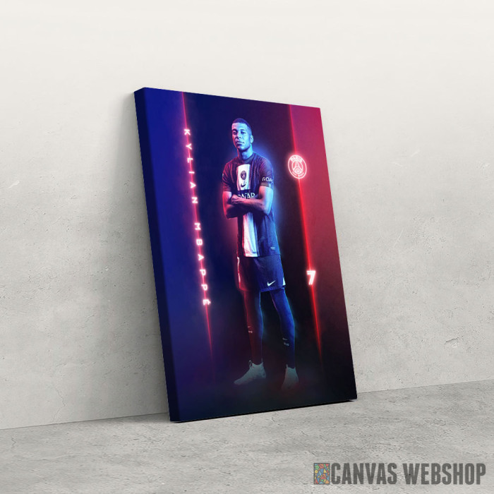 Kylian Mbappe je slika odštampana na kvalitetnom pamučnom platnu koje je zategnuto na ram od bukovog drveta. Slika Kylian Mbappe je dostupna u različitim dimenzijama.