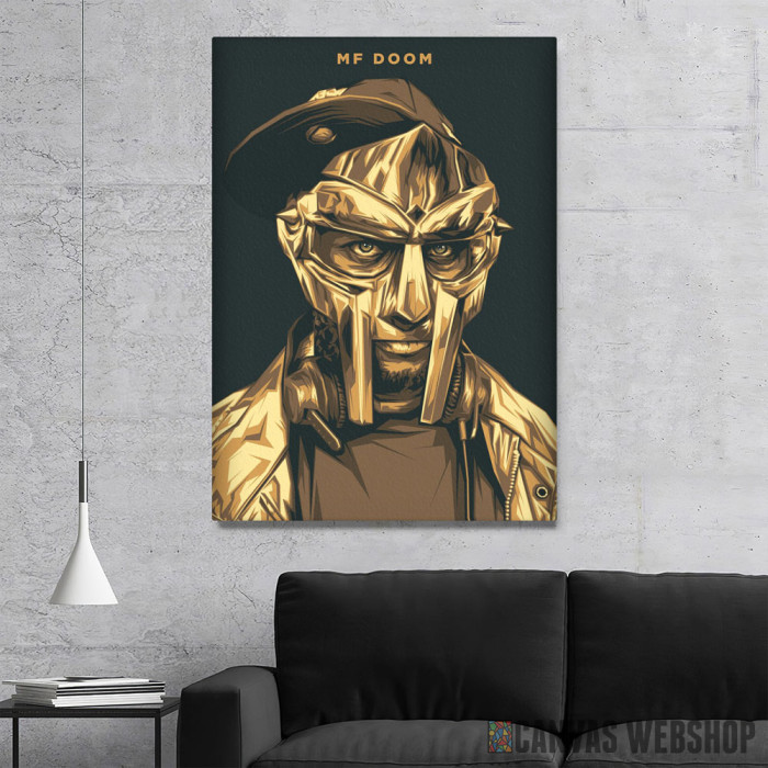 MF Doom gold mask je slika odštampana na kvalitetnom pamučnom platnu koje je zategnuto na ram od bukovog drveta. Slika MF Doom gold mask je dostupna u različitim dimenzijama.