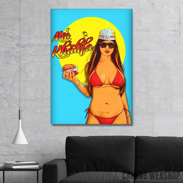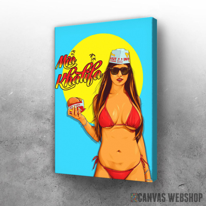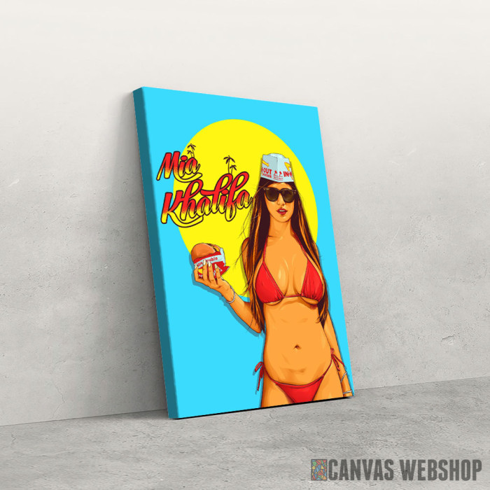 Mia Khalifa je slika odštampana na kvalitetnom pamučnom platnu koje je zategnuto na ram od bukovog drveta. Slika Mia Khalifa je dostupna u različitim dimenzijama.