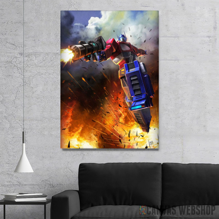 Optimus Prime napada je slika odštampana na kvalitetnom pamučnom platnu koje je zategnuto na ram od bukovog drveta. Slika Optimus Prime napada je dostupna u različitim dimenzijama.