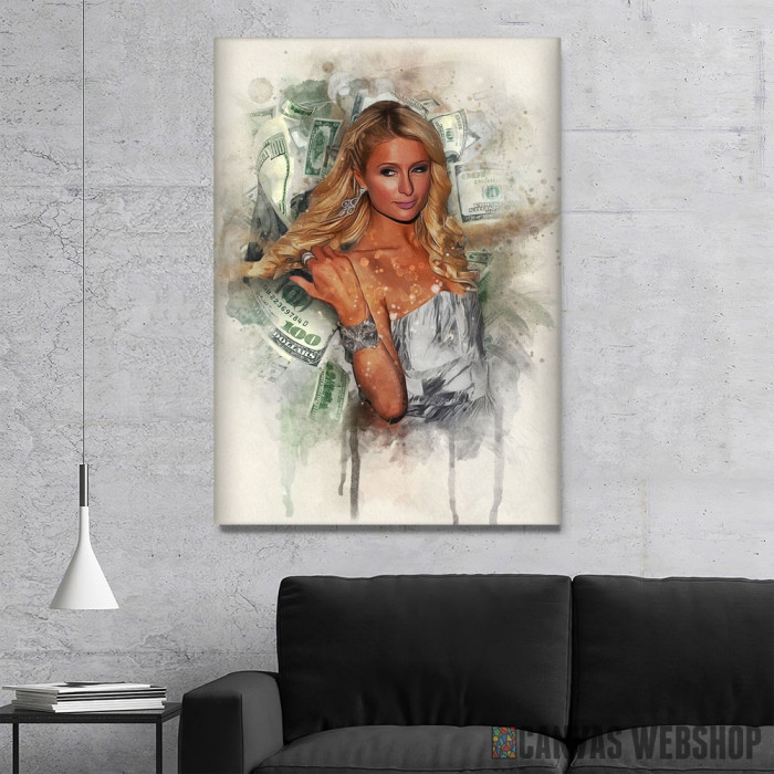 Paris Hilton je slika odštampana na kvalitetnom pamučnom platnu koje je zategnuto na ram od bukovog drveta. Slika Paris Hilton je dostupna u različitim dimenzijama.