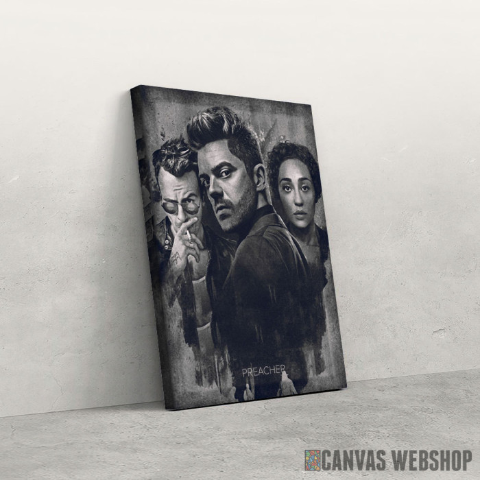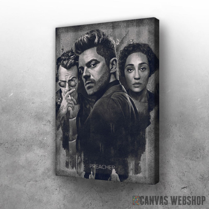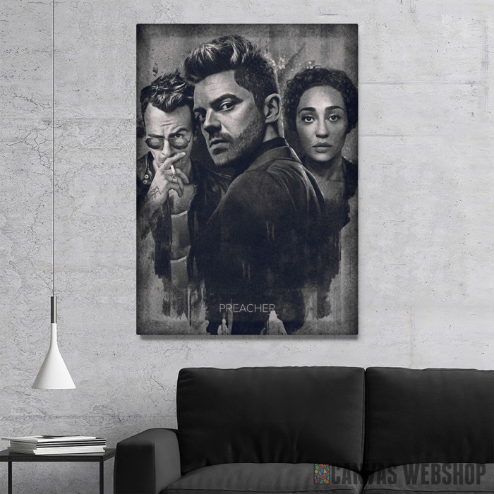 Preacher TV serija je slika odštampana na kvalitetnom pamučnom platnu koje je zategnuto na ram od bukovog drveta. Slika Preacher TV serija je dostupna u različitim dimenzijama.