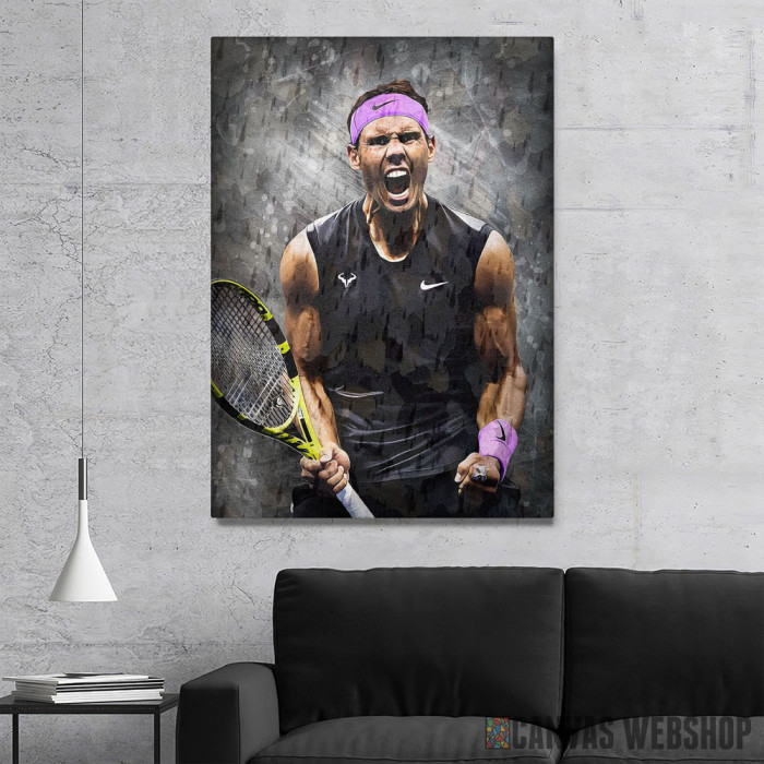 Rafael Nadal victory celebration je slika odštampana na kvalitetnom pamučnom platnu koje je zategnuto na ram od bukovog drveta. Slika Rafael Nadal victory celebration je dostupna u različitim dimenzijama.