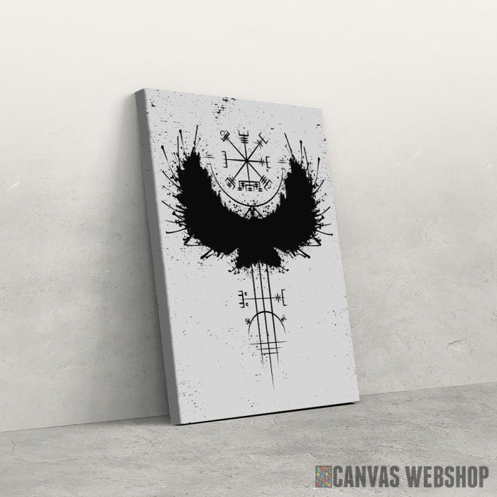 Raven Viking Vegvisir je slika odštampana na kvalitetnom pamučnom platnu koje je zategnuto na ram od bukovog drveta. Slika Raven Viking Vegvisir je dostupna u različitim dimenzijama.