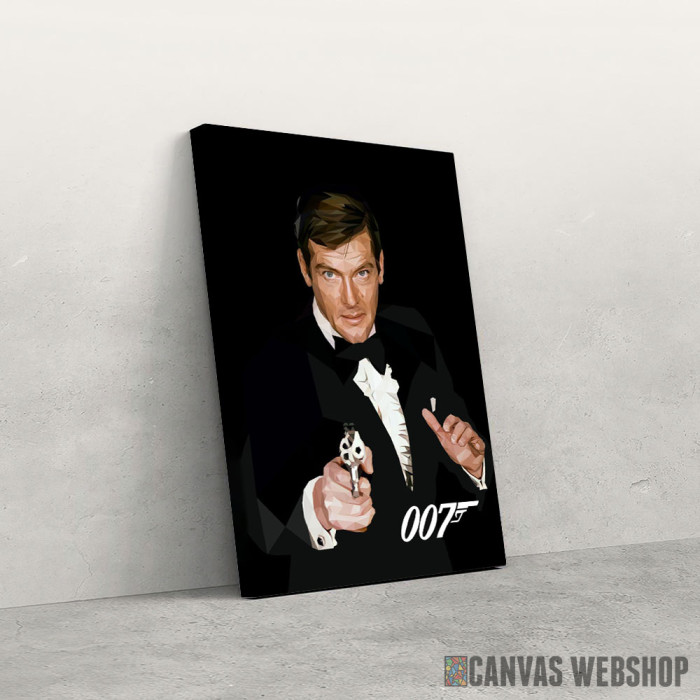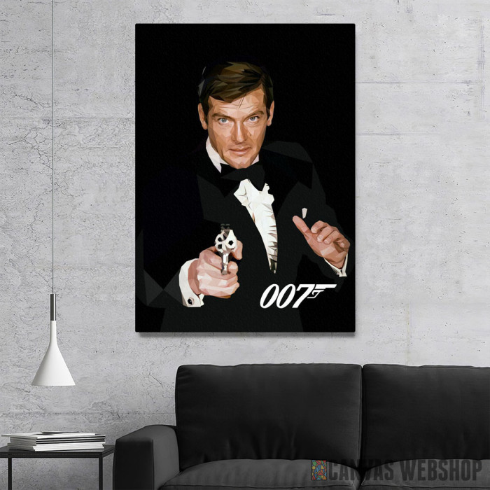 Roger Moore as 007 je slika odštampana na kvalitetnom pamučnom platnu koje je zategnuto na ram od bukovog drveta. Slika Roger Moore as 007 je dostupna u različitim dimenzijama.
