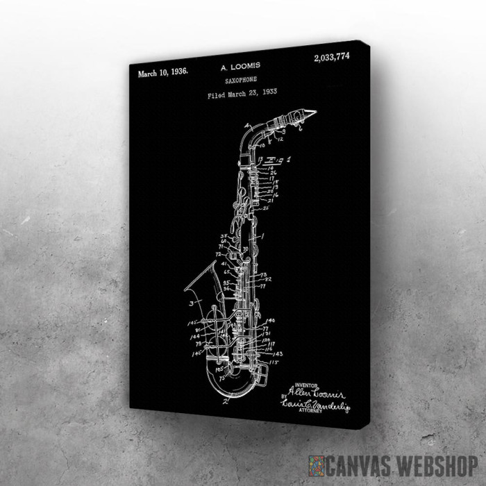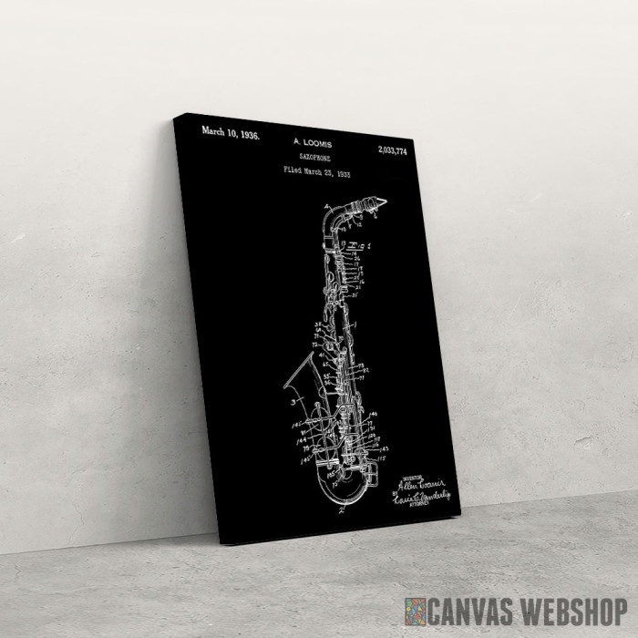 Patent saksofon 1936 je slika odštampana na kvalitetnom pamučnom platnu koje je zategnuto na ram od bukovog drveta. Slika Patent saksofon 1936 je dostupna u različitim dimenzijama.