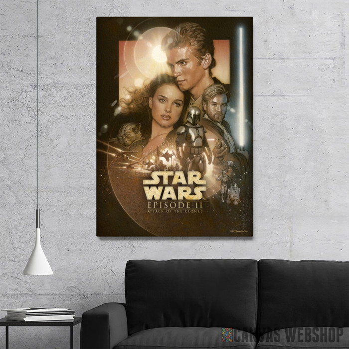 Star Wars Episode II: Attack of the Clones je slika odštampana na kvalitetnom pamučnom platnu koje je zategnuto na ram od bukovog drveta. Slika Star Wars Episode II: Attack of the Clones je dostupna u različitim dimenzijama.