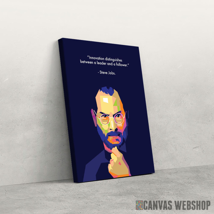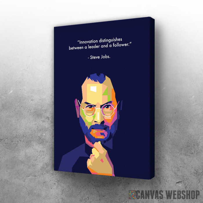 Steve Jobs citat o liderima je slika odštampana na kvalitetnom pamučnom platnu koje je zategnuto na ram od bukovog drveta. Slika Steve Jobs citat o liderima je dostupna u različitim dimenzijama.