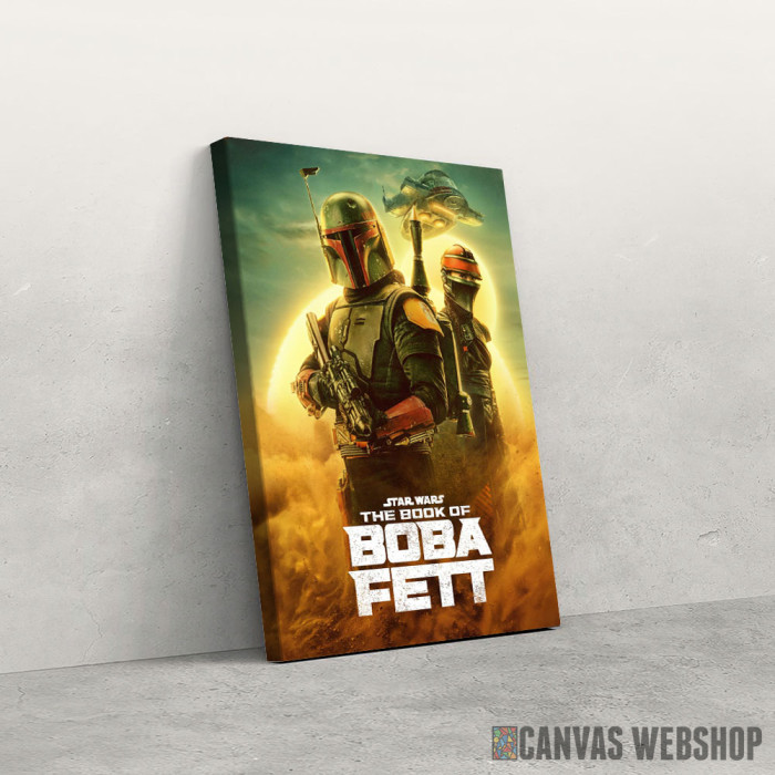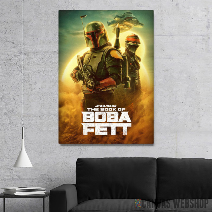 The Book of Boba Fett with logo je slika odštampana na kvalitetnom pamučnom platnu koje je zategnuto na ram od bukovog drveta. Slika The Book of Boba Fett with logo je dostupna u različitim dimenzijama.