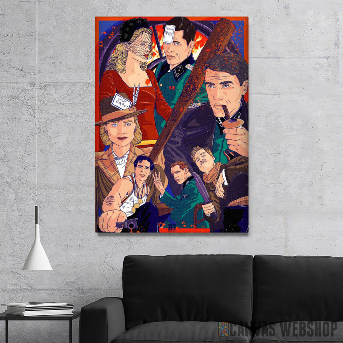 Inglourious Basterds je slika odštampana na kvalitetnom pamučnom platnu koje je zategnuto na ram od bukovog drveta. Slika Inglourious Basterds je dostupna u različitim dimenzijama.