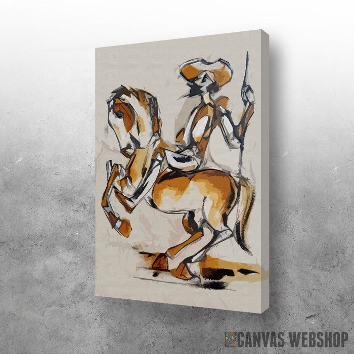 Konjanik je slika odštampana na kvalitetnom pamučnom platnu koje je zategnuto na ram od bukovog drveta. Slika Konjanik je dostupna u različitim dimenzijama.