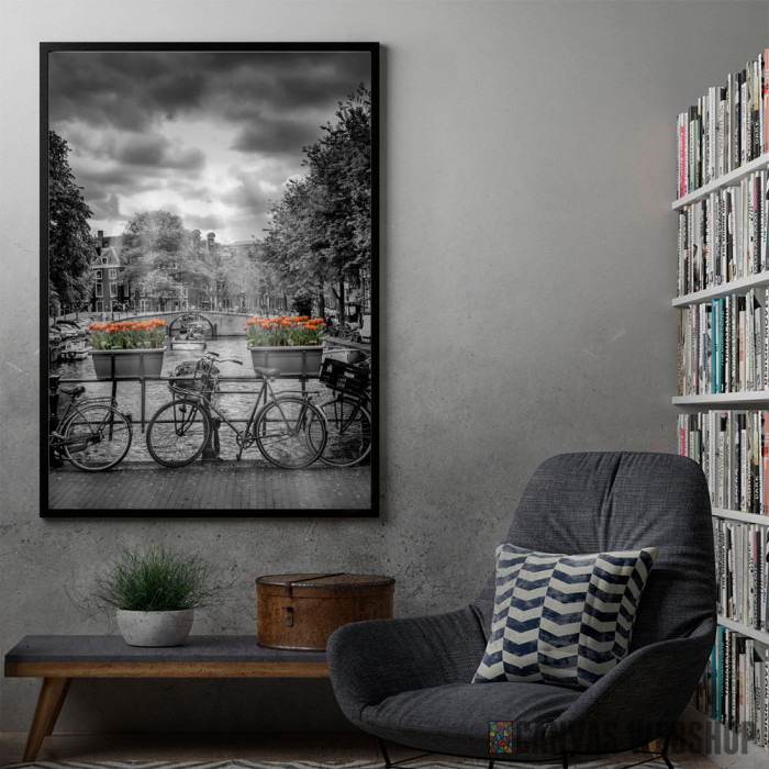 Amsterdam je poster odštampan na papiru koji uokviruje elegantan drveni ram sa staklom. Uramljeni poster je dostupan u različitim dimenzijama.