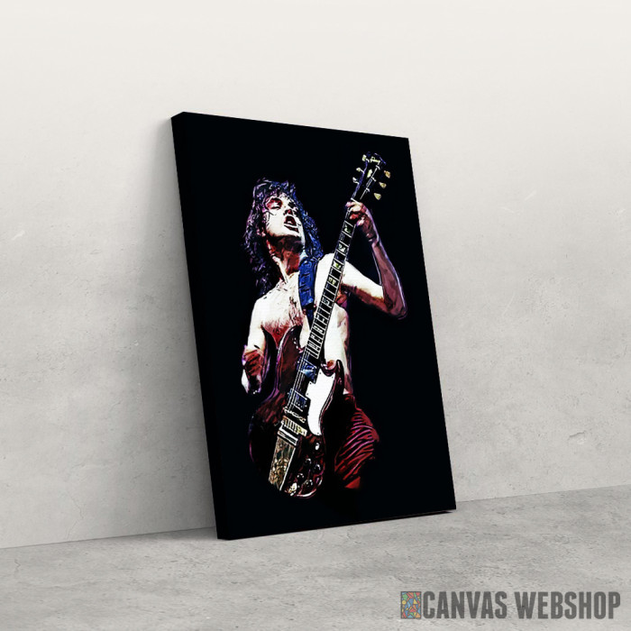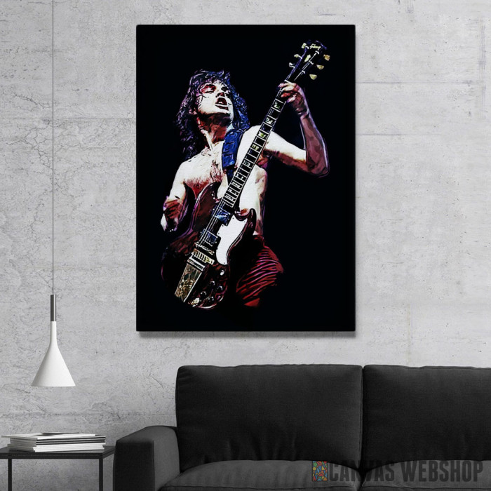 Angus Young je slika odštampana na kvalitetnom pamučnom platnu koje je zategnuto na ram od bukovog drveta. Slika Angus Young je dostupna u različitim dimenzijama.