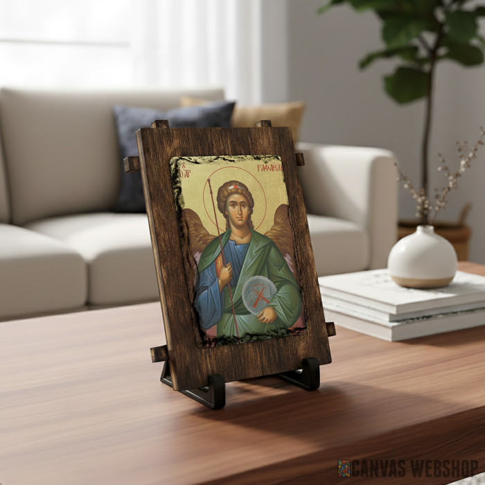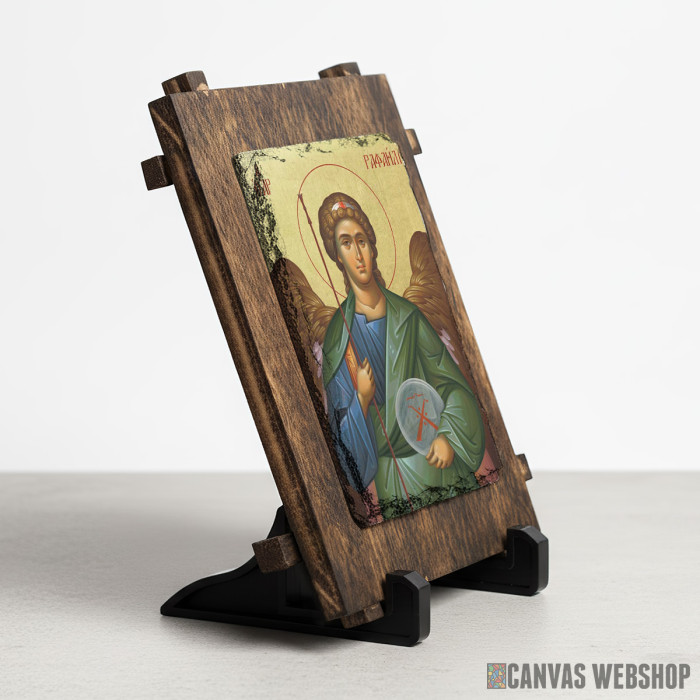 Arhangel Rafail je u pravoslavlju poznat kao iscelitelj tela i duše, zaštitnik putnika, bolesnih i svih koji nose teret briga. Ikona sa njegovim likom donosi smirenje, utehu i obnovu, naročito onima koji prolaze kroz teškoće, bolesti ili emocionalni umor. U domu je ona simbol Božije milosti koja obnavlja čoveka iznutra. Idealna za sobe ljudi koji se leče, ali i kao poklon onima kojima želimo zdravlje i snagu.