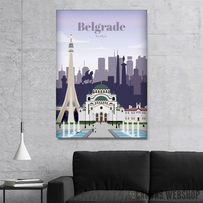Beograd animirano je slika odštampana na kvalitetnom pamučnom platnu koje je zategnuto na ram od bukovog drveta. Slika Beograd animirano je dostupna u različitim dimenzijama.