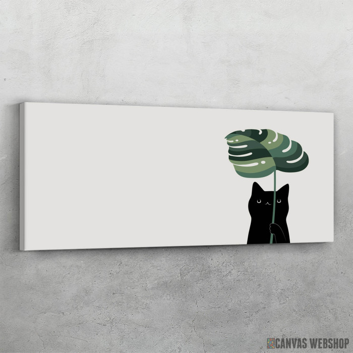 Biljka i macka je slika odštampana na kvalitetnom pamučnom platnu koje je zategnuto na ram od bukovog drveta. Slika Biljka i macka je dostupna u različitim dimenzijama.