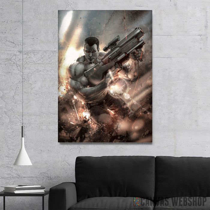 Bloodshot Machine Gun je slika odštampana na kvalitetnom pamučnom platnu koje je zategnuto na ram od bukovog drveta. Slika Bloodshot Machine Gun je dostupna u različitim dimenzijama.