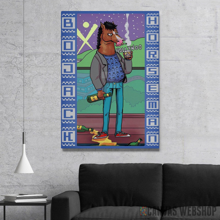 Bojack Horseman je slika odštampana na kvalitetnom pamučnom platnu koje je zategnuto na ram od bukovog drveta. Slika Bojack Horseman je dostupna u različitim dimenzijama.