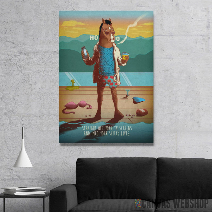 Bojack the Horseman je slika odštampana na kvalitetnom pamučnom platnu koje je zategnuto na ram od bukovog drveta. Slika Bojack the Horseman je dostupna u različitim dimenzijama.