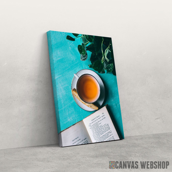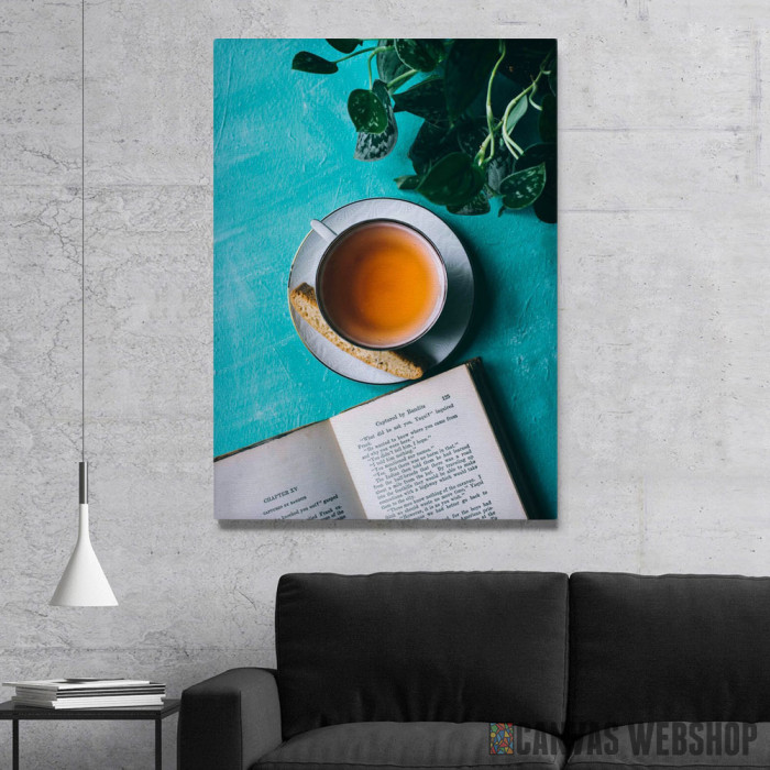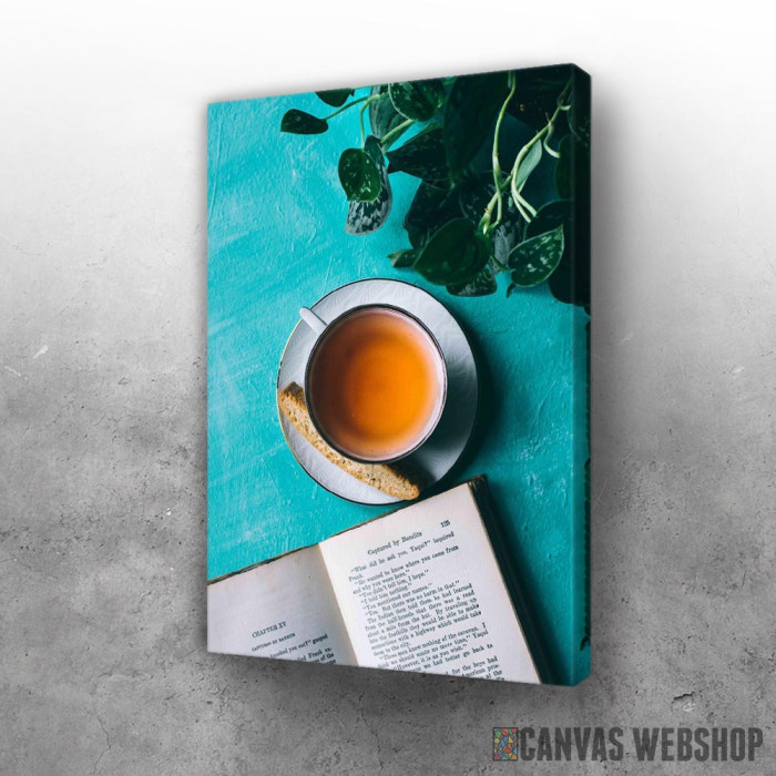 Čaj Pored Knjige je slika odštampana na kvalitetnom pamučnom platnu koje je zategnuto na ram od bukovog drveta. Slika Čaj Pored Knjige je dostupna u različitim dimenzijama.