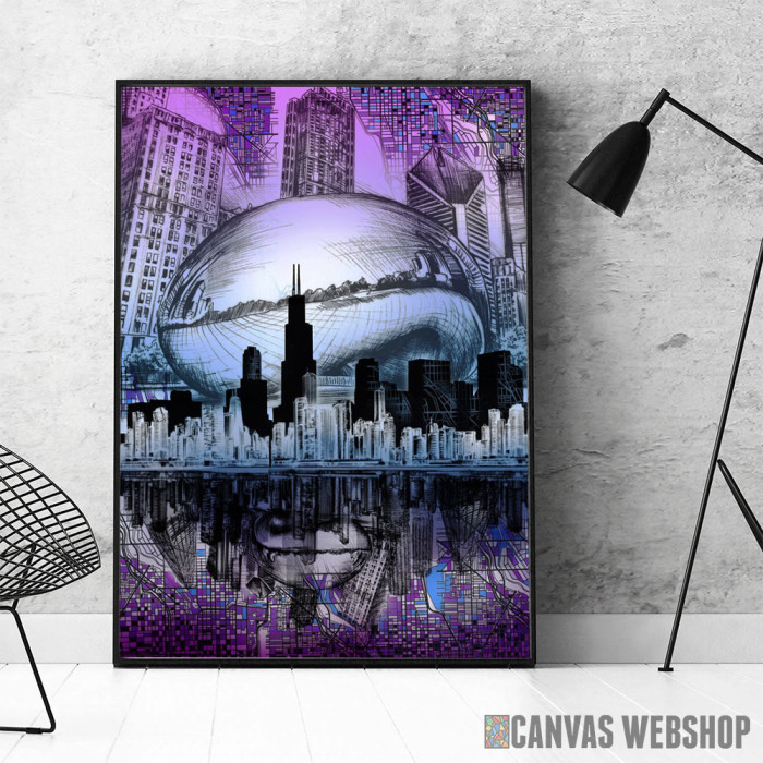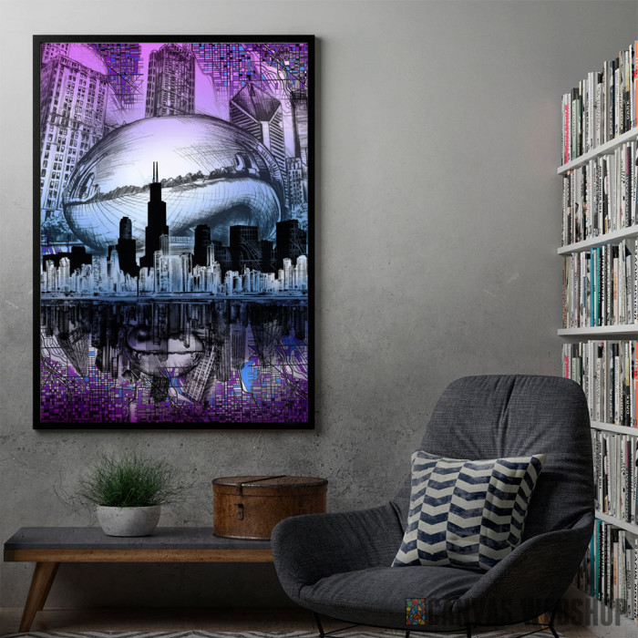 chicago city abstract 2 je poster odštampan na papiru koji uokviruje elegantan drveni ram sa staklom. Uramljeni poster je dostupan u različitim dimenzijama.