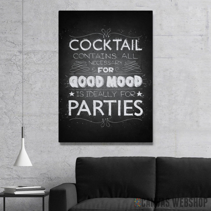 Cocktail Quotes je slika odštampana na kvalitetnom pamučnom platnu koje je zategnuto na ram od bukovog drveta. Slika Cocktail Quotes je dostupna u različitim dimenzijama.