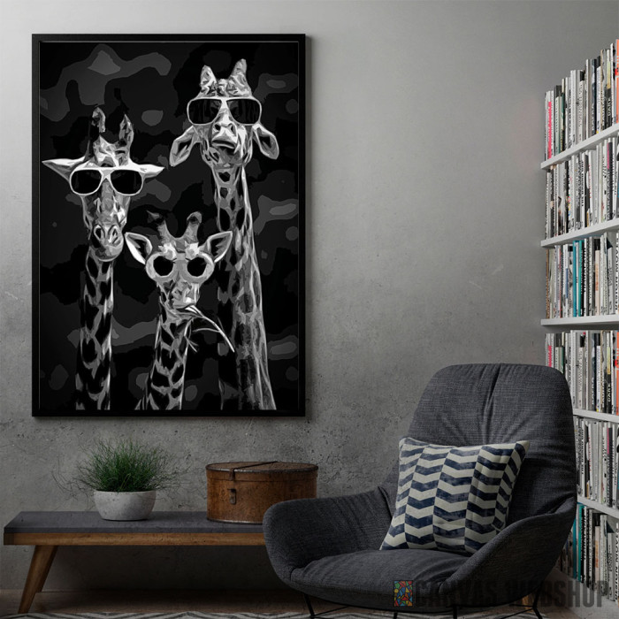 cool Giraffes je poster odštampan na papiru koji uokviruje elegantan drveni ram sa staklom. Uramljeni poster je dostupan u različitim dimenzijama.