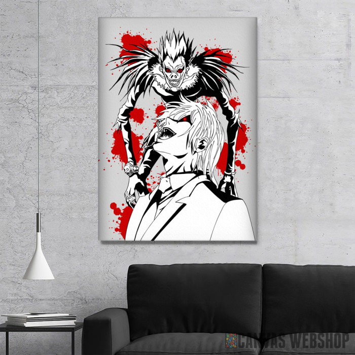 Death Note Kira art je slika odštampana na kvalitetnom pamučnom platnu koje je zategnuto na ram od bukovog drveta. Slika Death Note Kira art je dostupna u različitim dimenzijama.