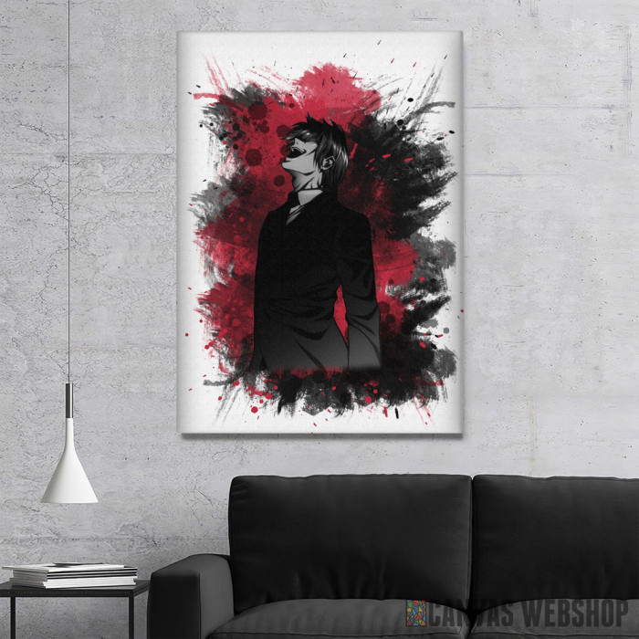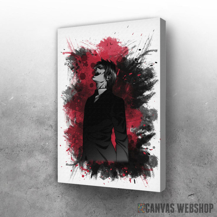 Death Note Yagami Raito laugh je slika odštampana na kvalitetnom pamučnom platnu koje je zategnuto na ram od bukovog drveta. Slika Death Note Yagami Raito laugh je dostupna u različitim dimenzijama.