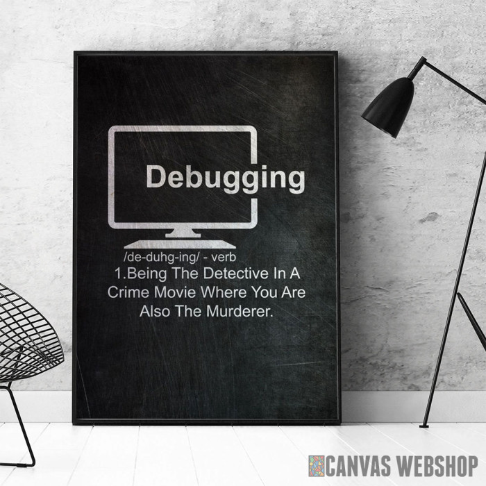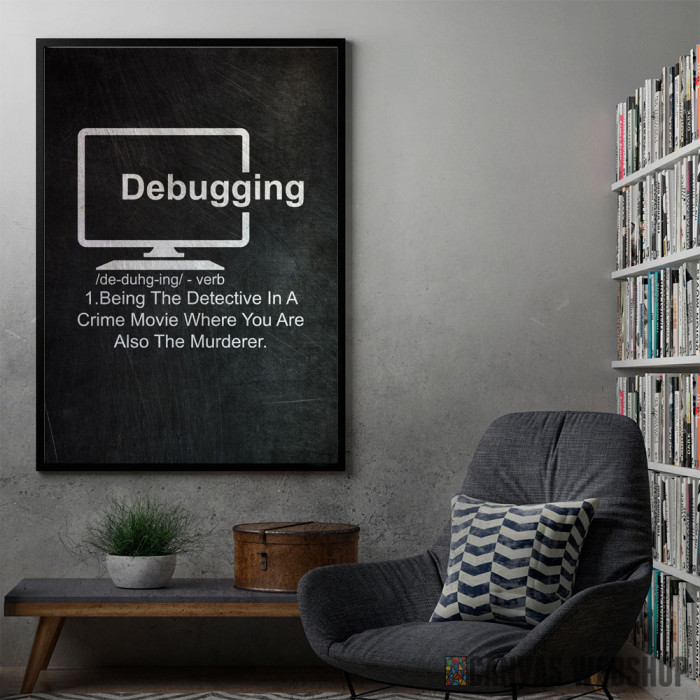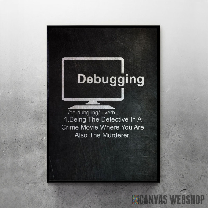 Debugging Definition je poster odštampan na papiru koji uokviruje elegantan drveni ram sa staklom. Uramljeni poster je dostupan u različitim dimenzijama.