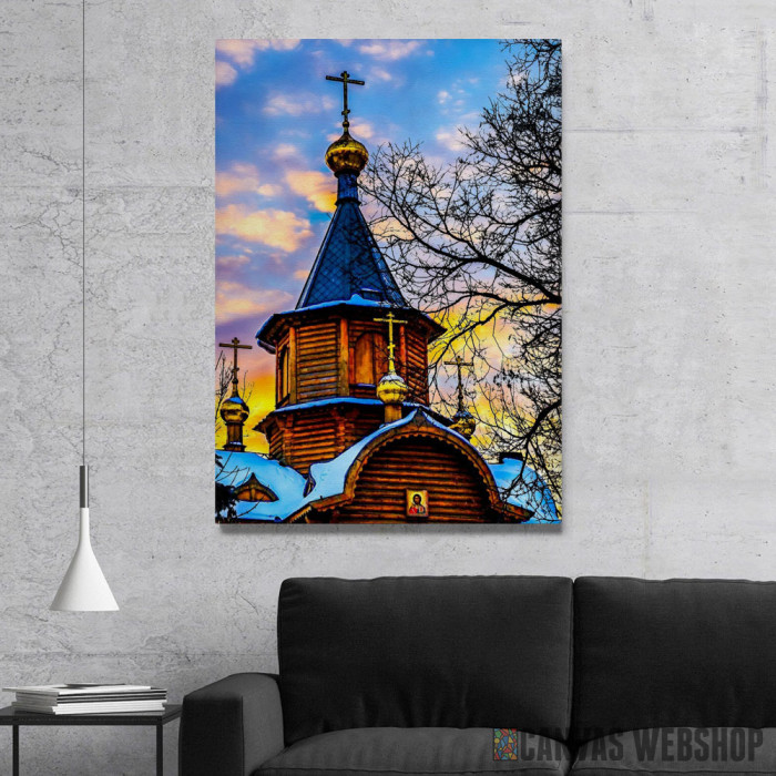 Drvena Crkva je slika odštampana na kvalitetnom pamučnom platnu koje je zategnuto na ram od bukovog drveta. Slika Drvena Crkva je dostupna u različitim dimenzijama.