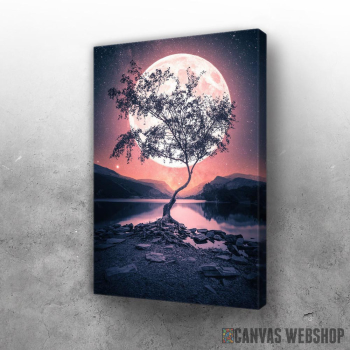 Drvo na mesecini je slika odštampana na kvalitetnom pamučnom platnu koje je zategnuto na ram od bukovog drveta. Slika Drvo na mesecini je dostupna u različitim dimenzijama.