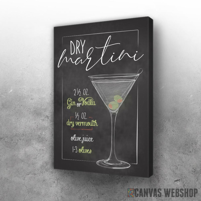 Dry Martini je slika odštampana na kvalitetnom pamučnom platnu koje je zategnuto na ram od bukovog drveta. Slika Dry Martini je dostupna u različitim dimenzijama.