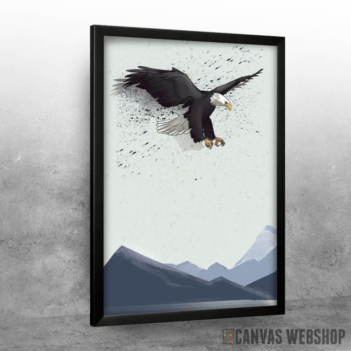 Eagle Bird over Mountains je poster odštampan na papiru koji uokviruje elegantan drveni ram sa staklom. Uramljeni poster je dostupan u različitim dimenzijama.