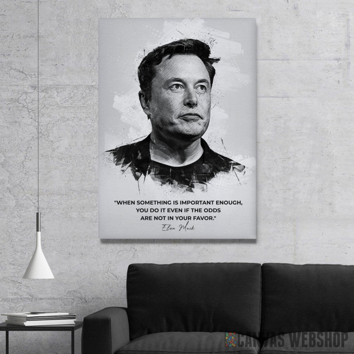 Elon Mask citat je slika odštampana na kvalitetnom pamučnom platnu koje je zategnuto na ram od bukovog drveta. Slika Elon Mask citat je dostupna u različitim dimenzijama.