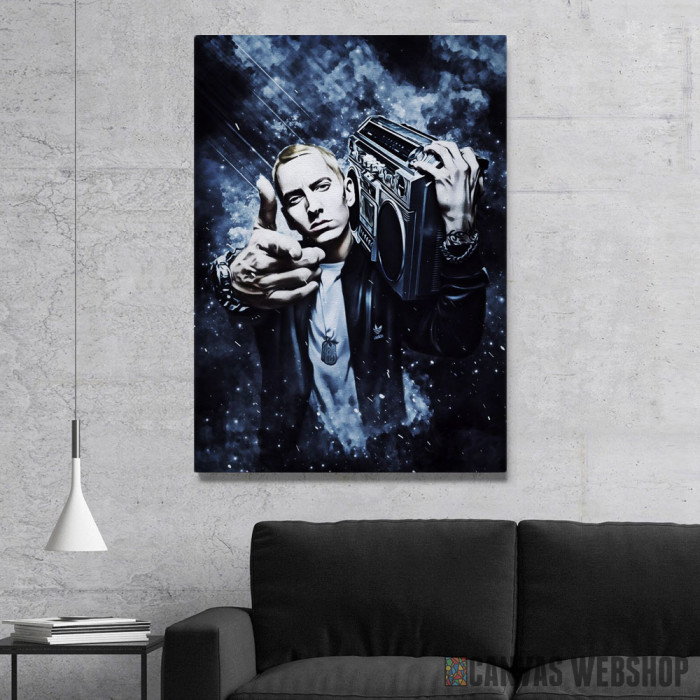 Eminem 2 je slika odštampana na kvalitetnom pamučnom platnu koje je zategnuto na ram od bukovog drveta. Slika Eminem 2 je dostupna u različitim dimenzijama.